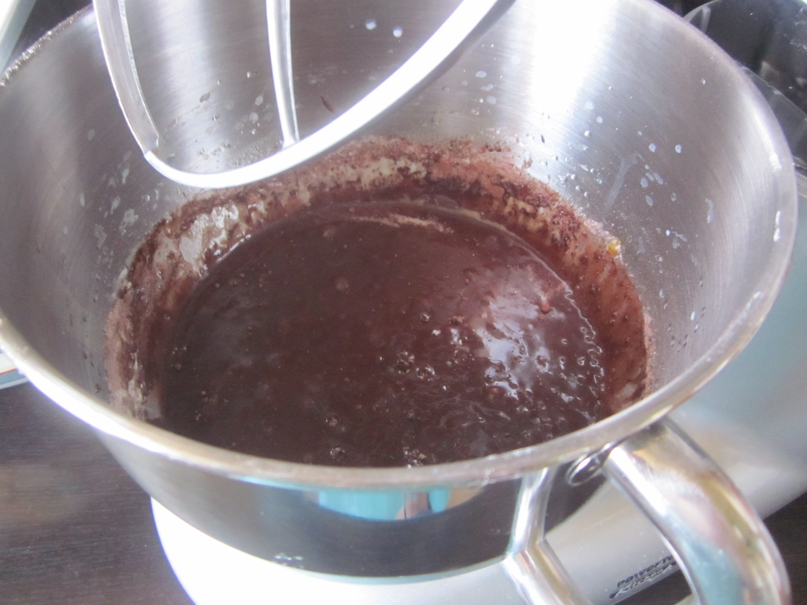 Făina, cernută împreună cu praful de copt, stins cu zeamă de lămâie, și cacaoa, se adaugă la amestecul de ouă. Se continuă mixarea la nivel minim, până ce se înglobează toate ingredinetele și se obține un amestec omogen.