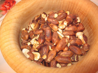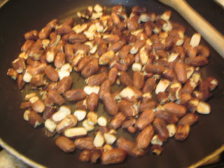 - Între timp se prăjesc alunele de pădure, decojite, într-o tigaie fără grăsime la foc iute cca. 5 minute, amestecându-se continuu, ca să nu se ardă 😉 Se folosește metoda bucătarilor chinezi de a scutura tigaia, dar dacă nu aveți dexteritatea suficientă sau putere, amestecați cu o lingură de lemn. După ce s-au prăjit se lasă la răcit, cca. 10 minute, apoi se mărunțesc.