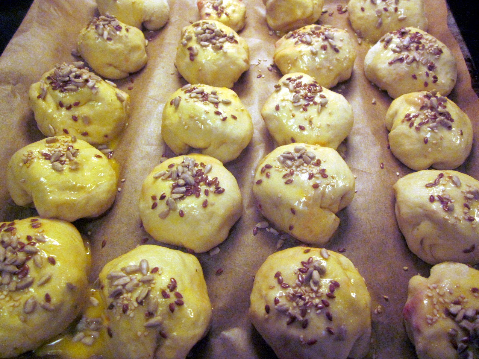 Fiecare pătrat se închide ca și un plic, apoi se rotunjește în mâini, ca să se obțină o chiflă uniformă, cât se poate. Chiflele obținute se pun în tava tapetată cu foaie de pergament, la ceva distanță între ele, atât cât să nu se unească.