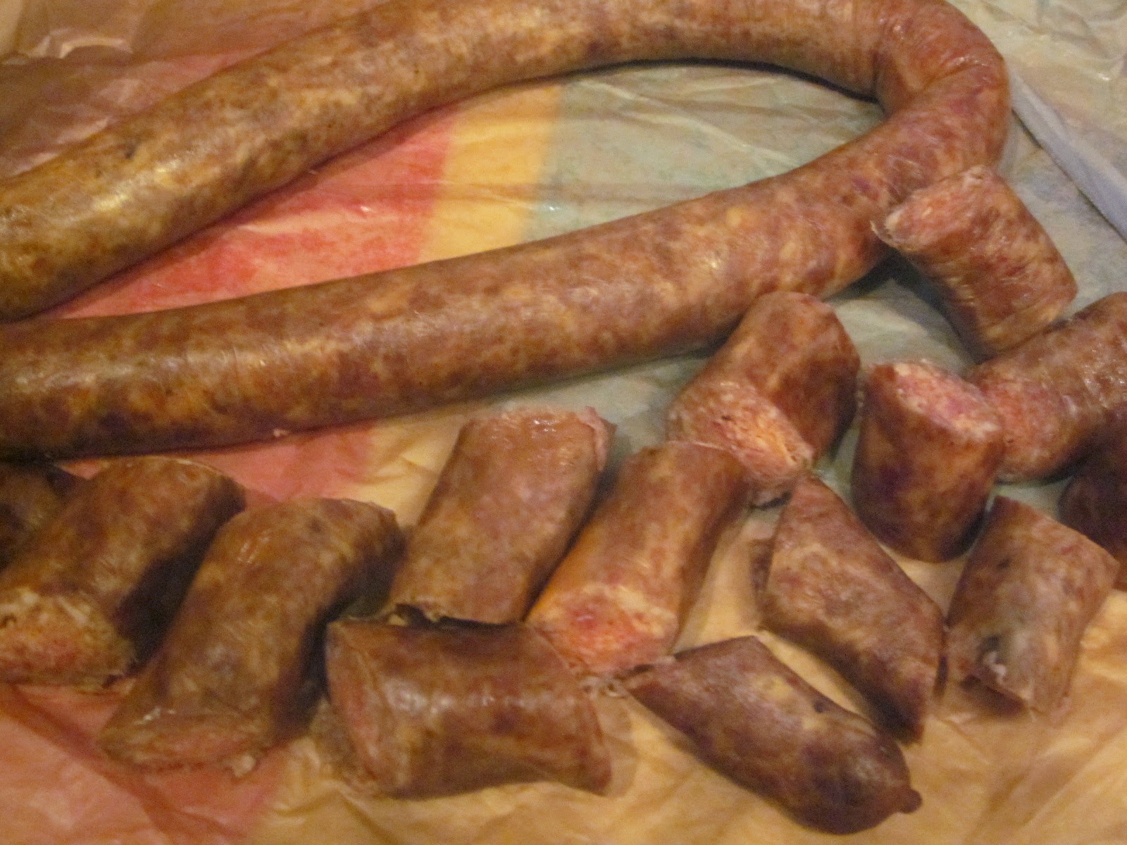 - cârnați de casă afumați 2-3 fire, rețeta aici: http://www.bucataras.ro/retete/carnati-a-la-pana-27887.html.