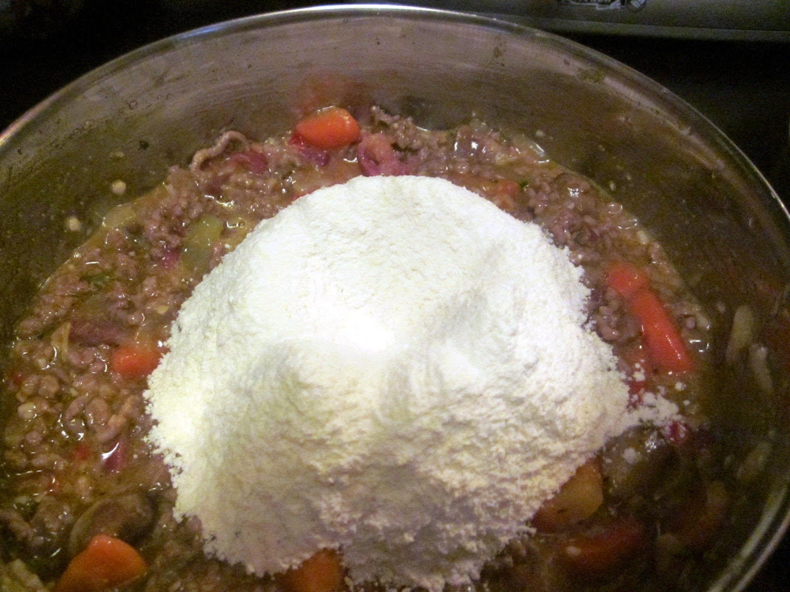 - După ce s-au îmbinat toate ingredientele se adaugă ouăle și grișul, amestecându-se ușor până ce se înglobează toate ingredientele și se lasă la odihnă cca. 10 minute. Între timp se pregătesc ciupercile umplute pentru topping. Rețeta aici: