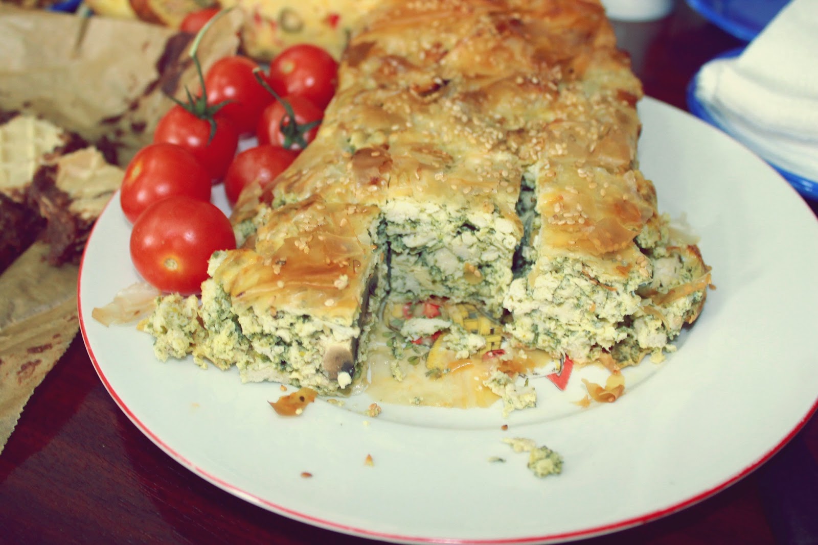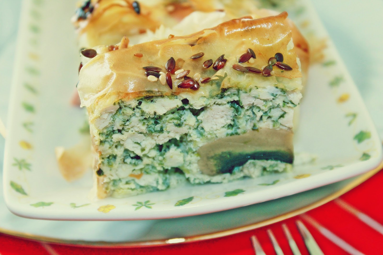 - Foile se închid peste umplutură ca și un plic. Se ung deasupra cu ou bătut, se preasă mix-ul de semințe și se dă la copt, în cuptorul preîncins cca. 45 de minute la foc mediu.