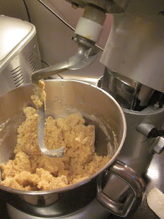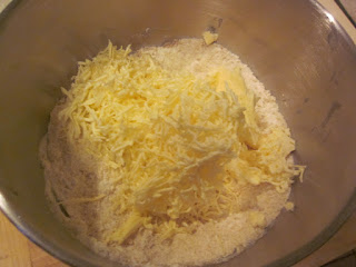 - Apoi se adaugă untul rece, răzuit și se frământă aluatul până ce se obține unul omogen, cca. 10 minute, nu mai mult, ca să nu se înmoaie untul, de la căldura mâinilor 😉