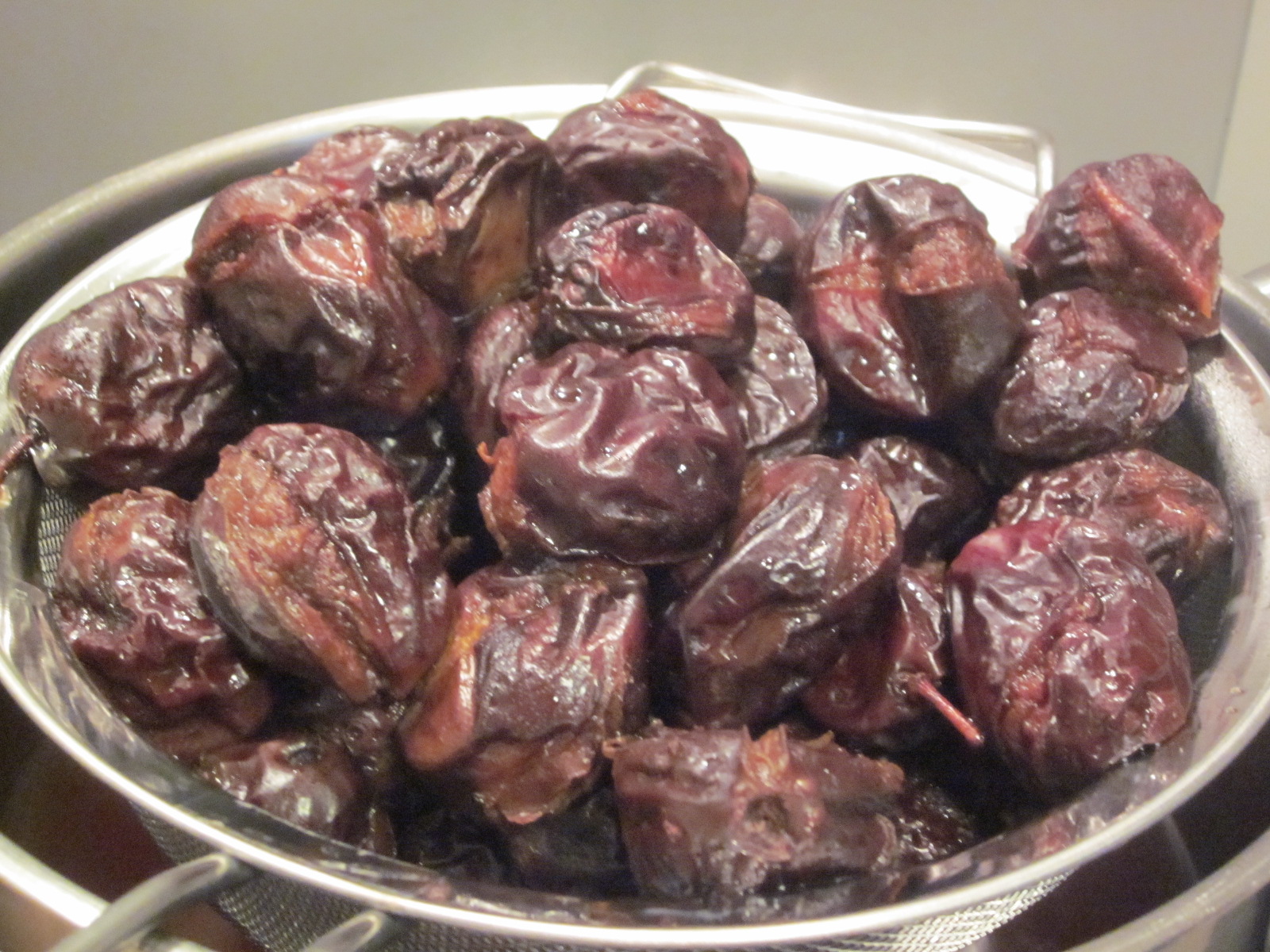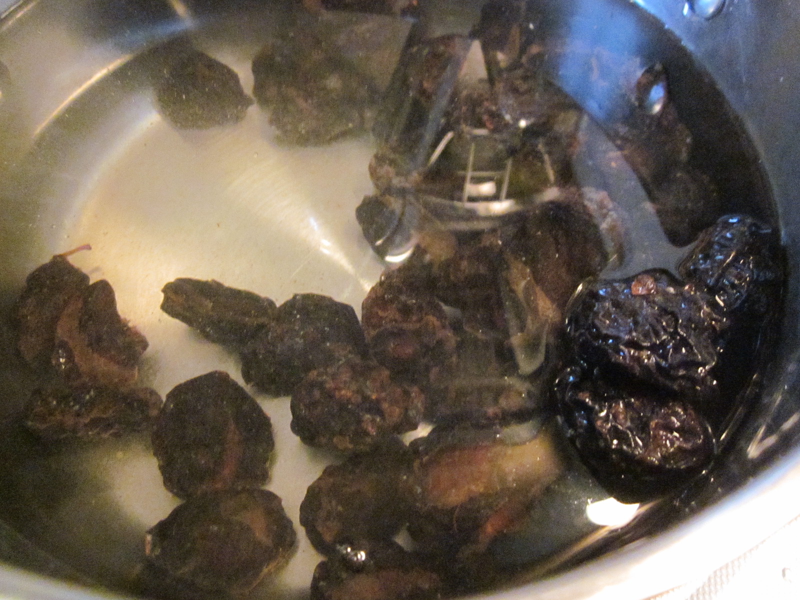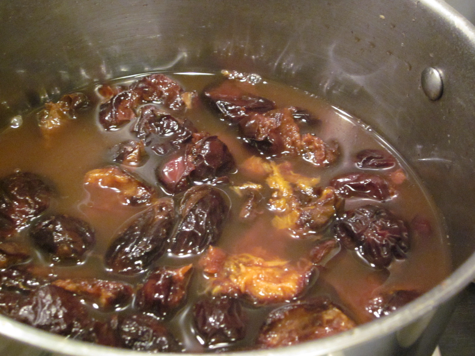 - Prunele uscate se pun, de cu seară, în apa rece și se lasă la hidratat până a două zi. Se strecoară, se adaugă 500 ml apa rece, se pun la fiert într-un vas cu fundul mai gros, eventual tuci, cca. 1 oră, până se înmoaie prunele.