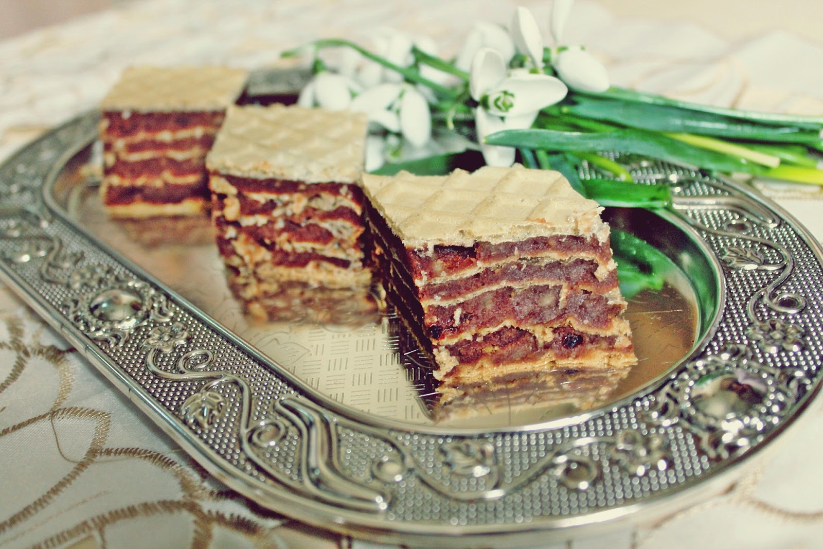 - Deasupra prăjiturii se așează o greutate și se dă la rece până a doua zi, când se taie în pătrățele sau romburi. Spor, răbdare și poftă bună! 😉