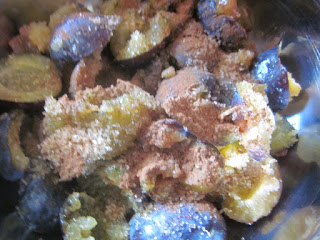 Peste prunele curățate, se presară zahăr vanilinat și un praf de scorțișoară, după gustul fiecăruia.