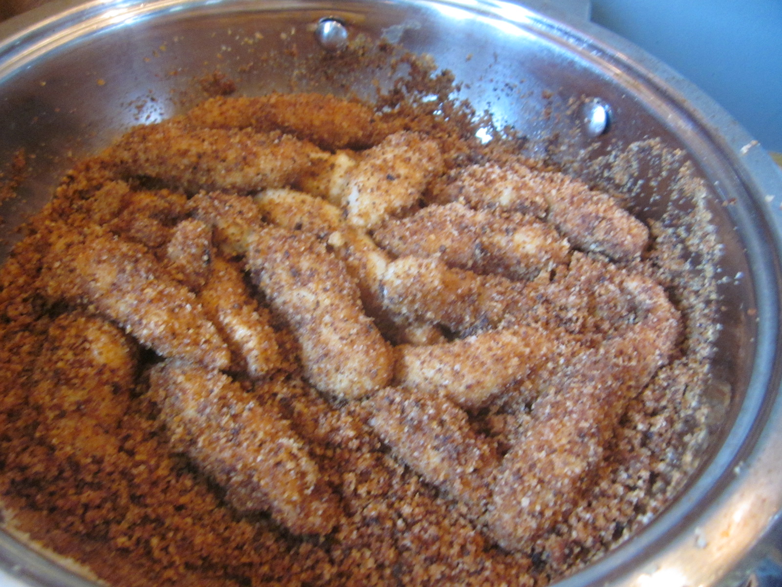 Între timp se prăjește pesmetul ușor în ulei, împreună cu zahărul vanilinat, într-o tigaie antiaderentă.