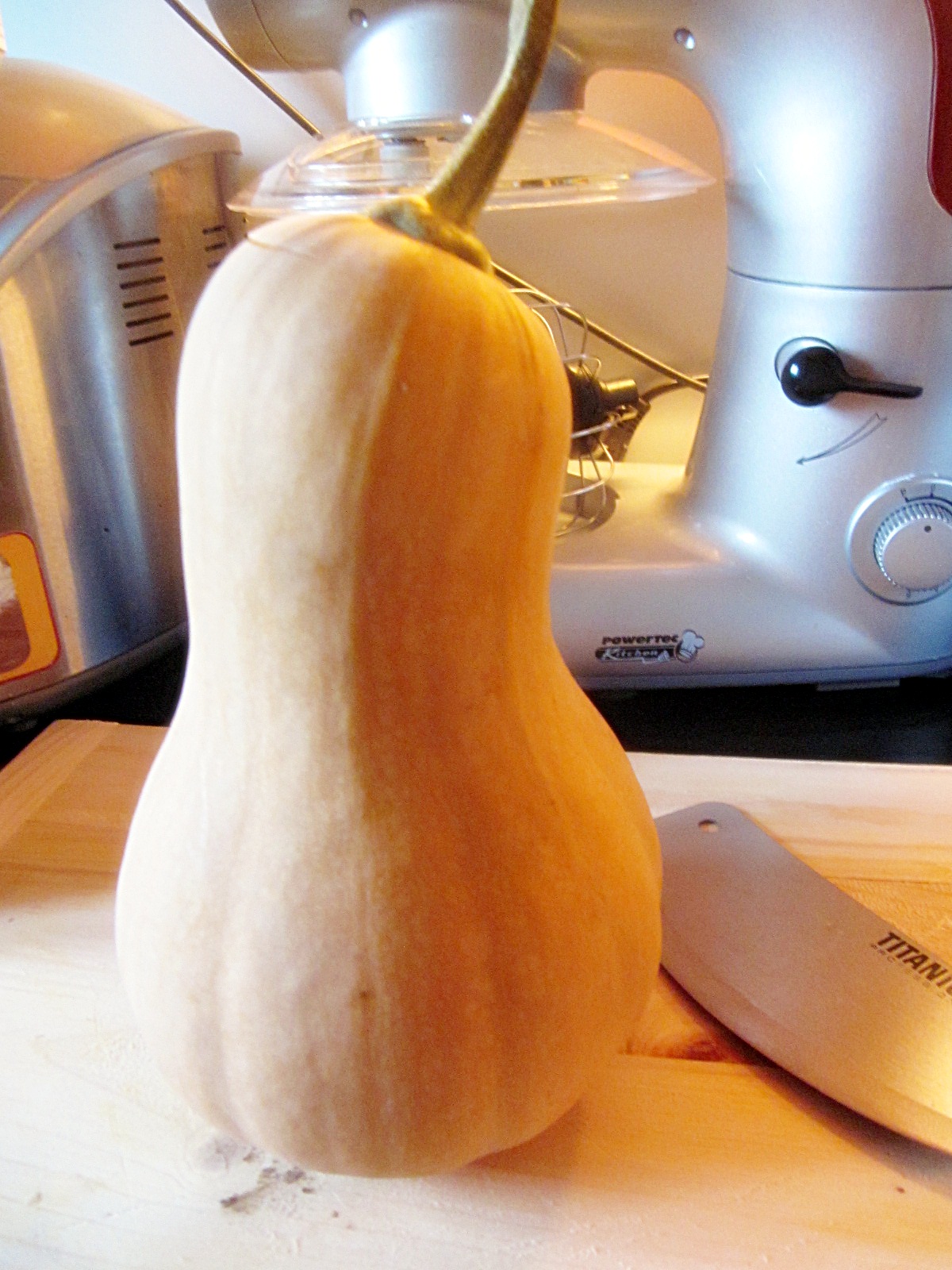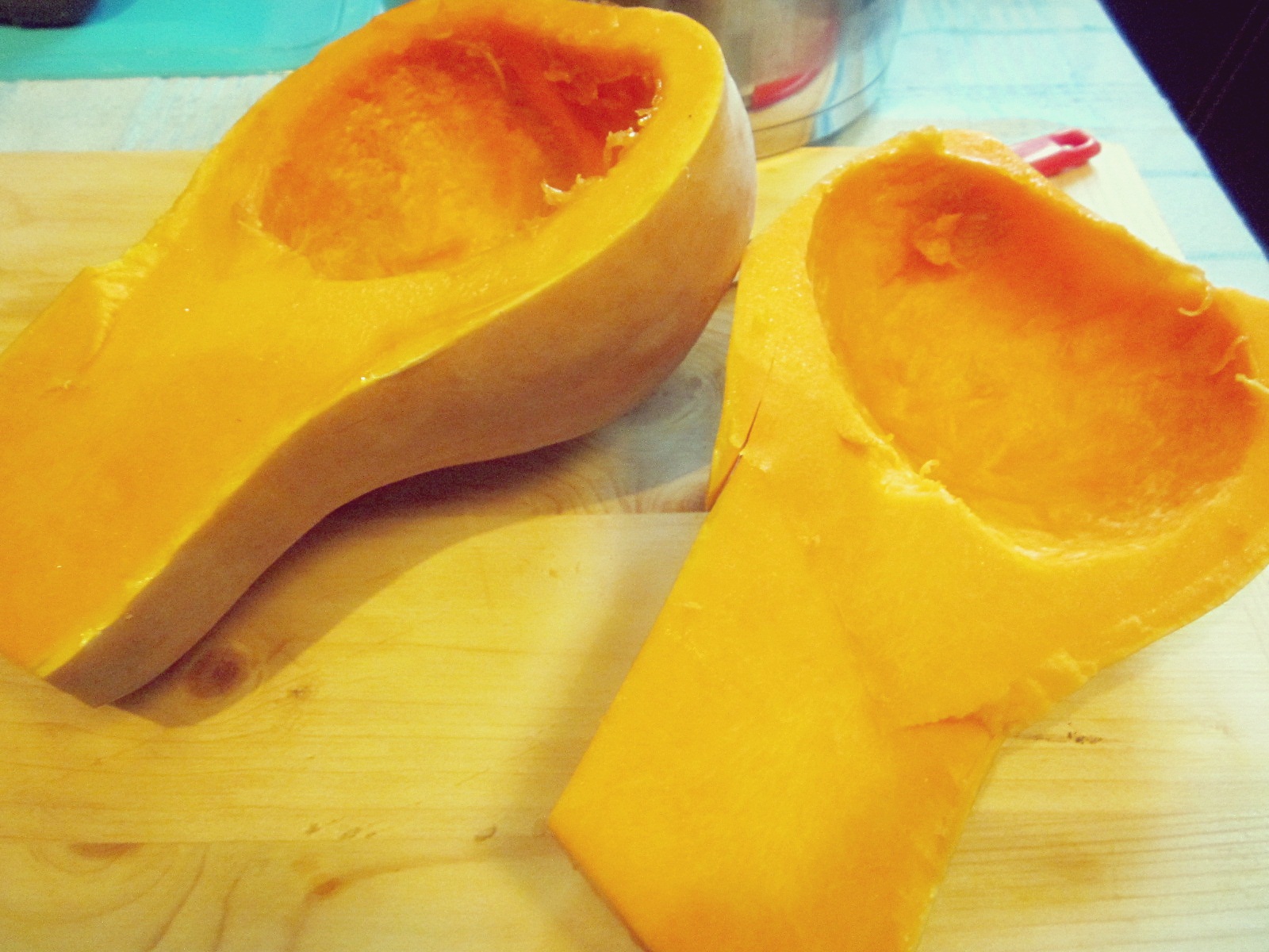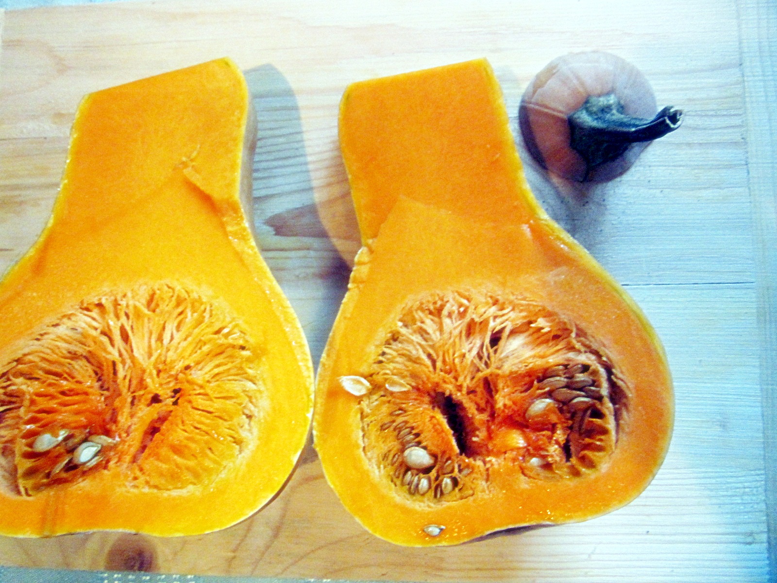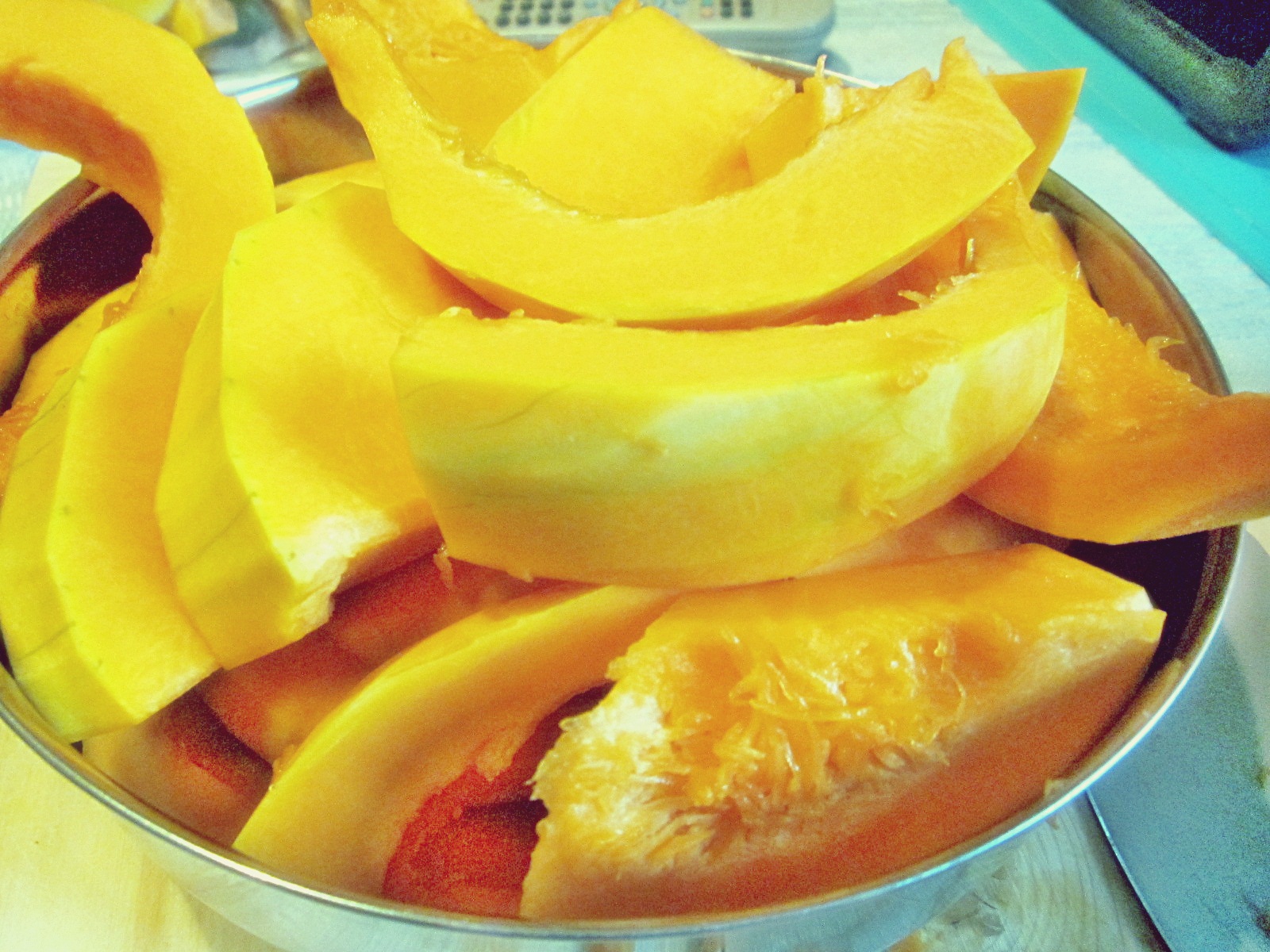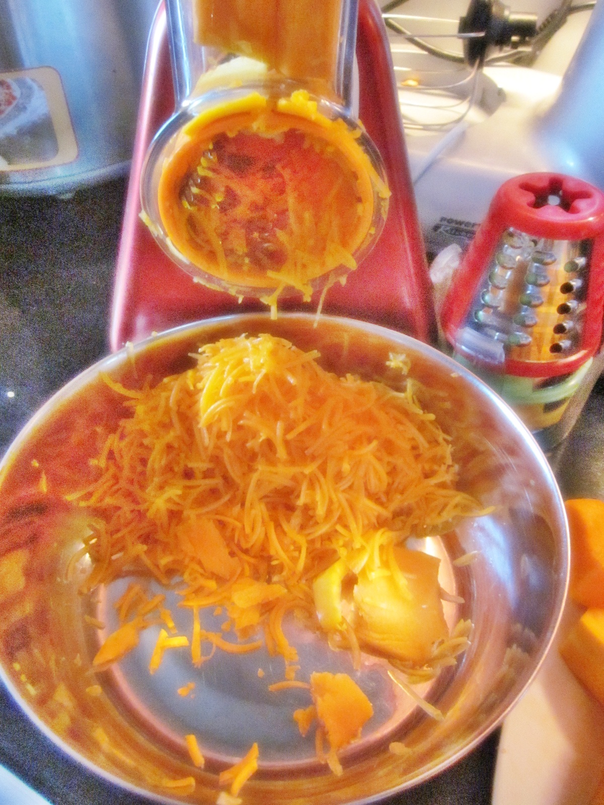 •  Între timp se curată dovleacul de coajă, se taie bucăți mărișoare, ce se rad pe răzătoarea fină.