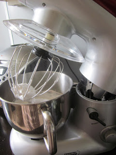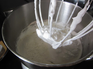După ce s-au albit și umflat se adaugă îndulcitorul sau zahărul și se amestecă rapid până se obține o spumă lucioasă.