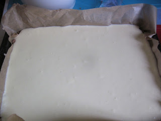 - Pentru umplutură brânza de vaci se amestecă energic cu ouăle, plus albușul rămas de la aluat, zahărul tos, zahărul vanilinat și coaja de lămâie, până ce se înglobează toate ingredientele.