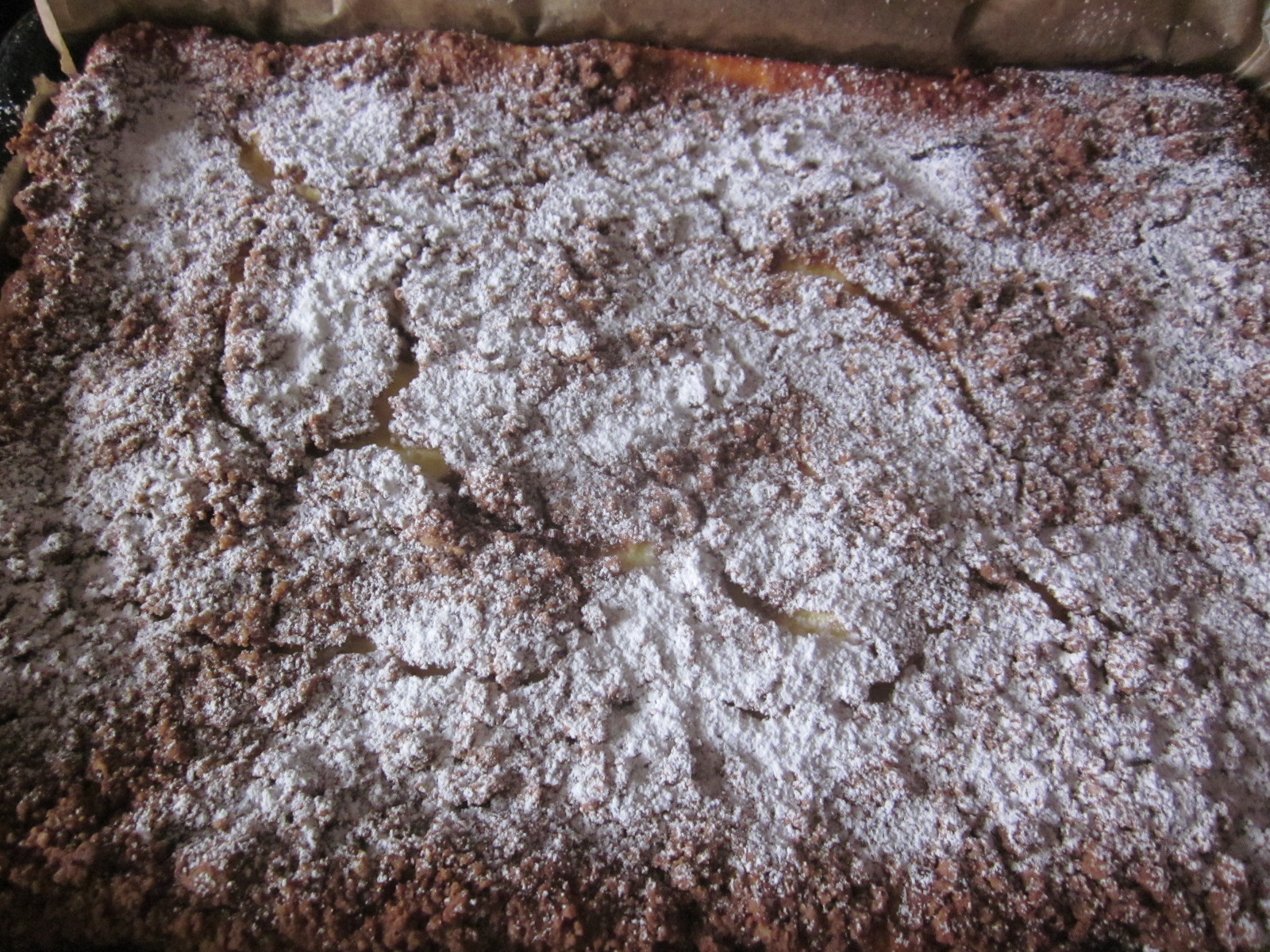 - Prăjitura se pune la copt în cuptorul preîncins cca. 45 de minute la foc mediu 😉 După ce s-a răcit se presară zahăr pudră 😉