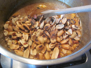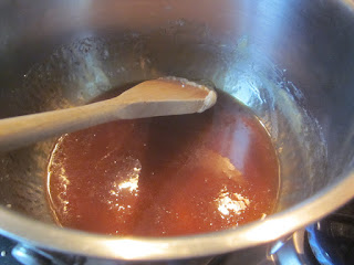 - Pentru crema caramel cele 8 linguri de zahăr se pun la topit, într-un vas cu fundul gros, amestecând permanent astfel încât să nu se ardă pe alocuri căci astfel se amărește. Se dă vasul deoparte, apoi se adaugă untul moale, amestecându-se, la foc mic, până la înglobarea completă. Cele 4 linguri de zahăr tos rămase, se amestecă cu gălbenușurile și se adaugă la amestecul de zahăr ars și unt. Alunele prăjte puțin, să aibă gust mai intens, se adaugă în creama caramel, lăsându-se la fiert la foc mic, până ce crema începe să se îngroașe.