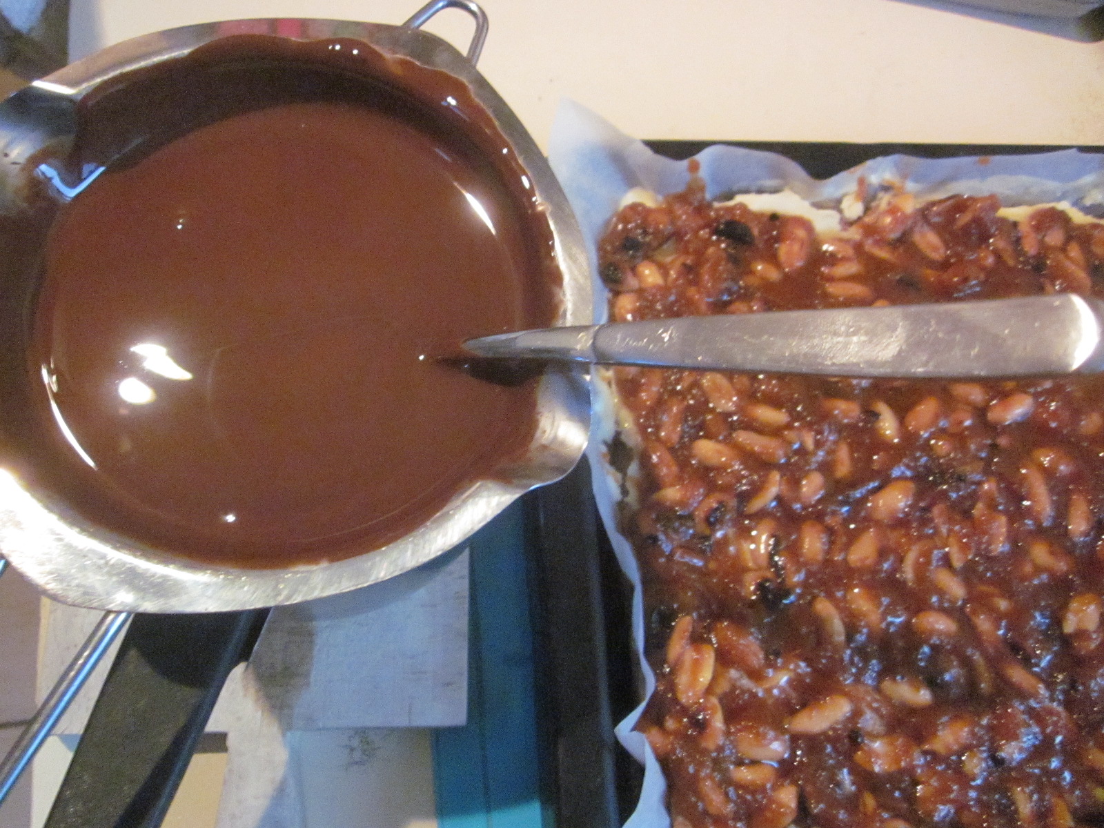 - Se lasă să se întărească, până a doua zi, apoi se porționează cu un cuțit cu lama încălzită.