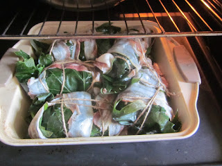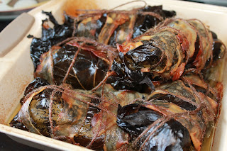 • Din când în când se ung pachețelele, cu sosul format în tavă, după 20 de minute se adaugă vinul, apoi se mai lasă la gătit în cuptor cca. 10 minute. Se servesc ca atare cu salată de sezon și/sau garnitura preferată.