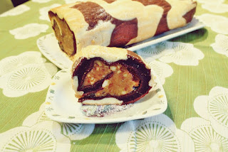 Ei nu am reușit să combin toate ingredientele, dar am adus cu mare întârziere, o ruladă caramelicioasă delicioasă. P.S. Zmeișorii au cam strâmbat din nas când am tăiat-o, vizual nu le-a inspirat încredere, dar când au gustat, au zâmbit, și au zis: ”ne aduce aminte de-o prăjitură de sărbători ce am degustat-o mai demult în Maramureș.” 😉 Ei chiar așa, m-am inspirat de la minunata Anca Roman, http://ilyanda.blogspot.ro/, care culmea e din Oradea 😉
