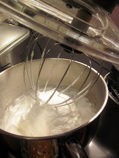 - Albușurile se mixează energic cu un praf de sare și oțetul. Apoi se adaugă zahărul tos, amestecându-se energic până ce se obține o bezea fermă. Se adaugă gălbenușurile,amestecându-se ușor. Apoi se adaugă făina amestecându-se ușor, până ce se înglobează în aluat.