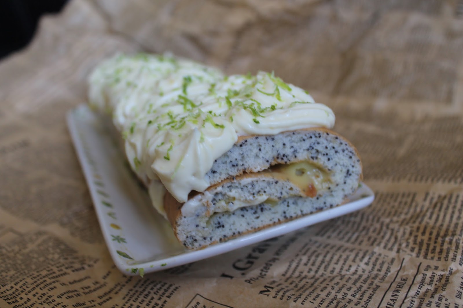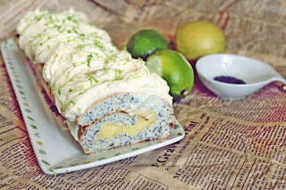 • Rulada răcorită se desface, se umple cu cremă, apoi se rulează din nou și se ornează cu cremă de lămâie brânzoasă, se finalizează cu coajă rasă de limetă;) Spor și poftă bună! P.S. vă asigur că e delicioasă, eu care nu sunt fan dulciuri 😀 😉