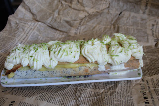 - Rulada răcorită se desface, se umple cu cremă, apoi se rulează din nou și se ornează cu cremă de lămâie brânzoasă, se finalizează cu coajă rasă de limetă;) Spor și poftă bună! P.S. vă asigur că e delicioasă, eu care nu sunt fan dulciuri 😀 😉