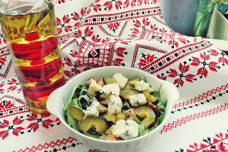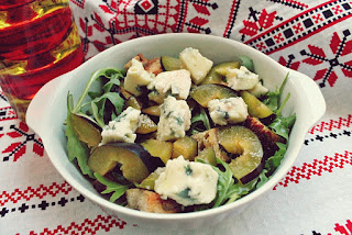 Brânza ”puturoasă”, adică cu mucegai, îmi place să o consum alături de fructe, acum am asociat-o cu prune. O minunăție 😉 De fapt am vrut să postez rețeta cu oțetul aromat din trandafiri și am ajuns la această minunată salată. Spor și poftă bună!