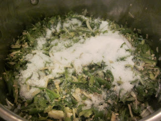 Legumele tocate se amestecă cu zahărul, oțetul și lămâia confiată, lăsându-se la odihnă până a doua zi. Amestecul de legume, împreună cu zeama lăsată, se pune în borcane sterilizate, ce se căpăcesc, etichetează, ”fotografiază”, în cazul meu.