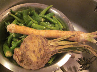 Ardeii iuți se spală, se taie codițele. Țelina și hreanul se curăță, se spală și se lasă în apă rece. Toate ingredientele se taie mărunt, recunosc, m-am folosit de robotul de bucătărie, din dotare, folosind pentru ardei partea cu rindea, iar pentru țelină și hrean partea cu răzătoare, astfel am terminat repede, și mai laes fără lacrimi și usturime.