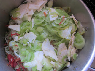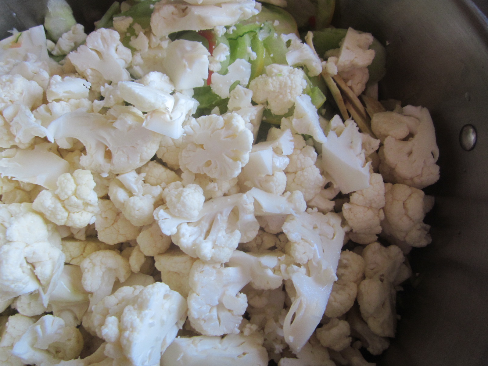 - Tijele de țelină se păstrează întregi. Conopida se desface buchetele mici și se adaugă la legume.