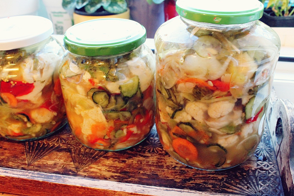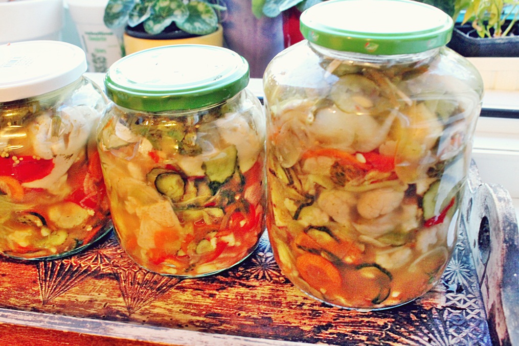 După o minunată plăcintă cu dovleac, am intrat în teritoriul conservelor, ce vor fi savurate de-a lungul lunilor reci de iarnă. După o raită în mediul virtual după o rețetă ușoară, am apelat tot la caietul vechi de rețete, care stă cam stingher în biblioteca din bucătărie. Sper că o să va placă salata mixtă de legume pentru iarnă, vă asigur că e cea mai ușoară variantă.