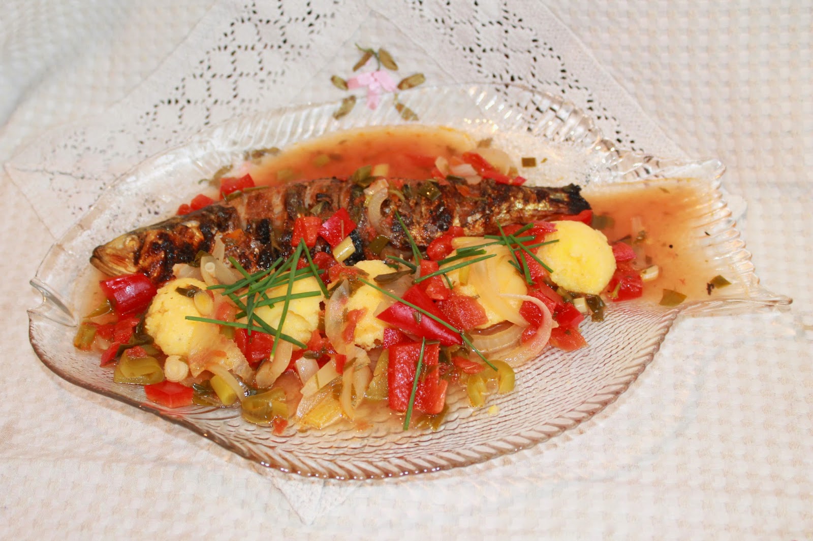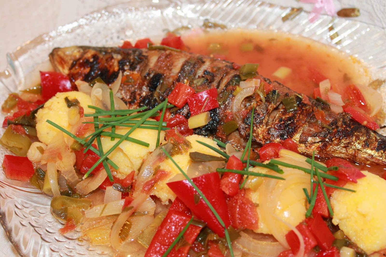 Au tot vorbit la TV zilele astea de scrumbia minunată de la Dunăre, îi spuneam lui soțului meu Gabi, că pește din ăsta încă n-am mâncat, am tot cerut când am fost la mare, chipurile îl aveau în meniu, dar nu pentru perioada de vară. ( Așa că Gabi, adică TataZmeu s-a dus la ”pescuit” și m-a liniștit . L-am curățat, l-am dat cu sare, i-am băgat în burtă rozmarin și lămâie așa am văzut la Vladimir Darok, alias Motan laOale pe Bucătăraș.ro, și așteaptă cuminte grătarul. Azi i-a venit sorocul;) Tare bun, deși are multe oase, dacă e gătit bine nu se mai simt. Alături am preparat repejor o mămăliguță și o zeamă de saramură, și asta e premieră:d Una peste alta totul a fost minunat. Vă aduc rețeta de începător în ale saramurii de pește;)