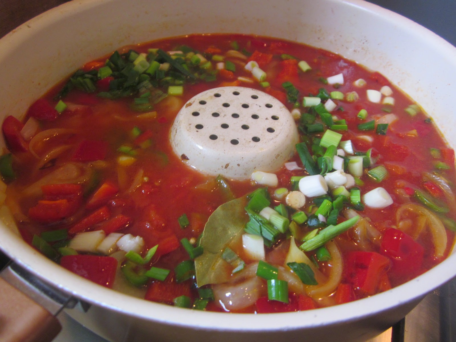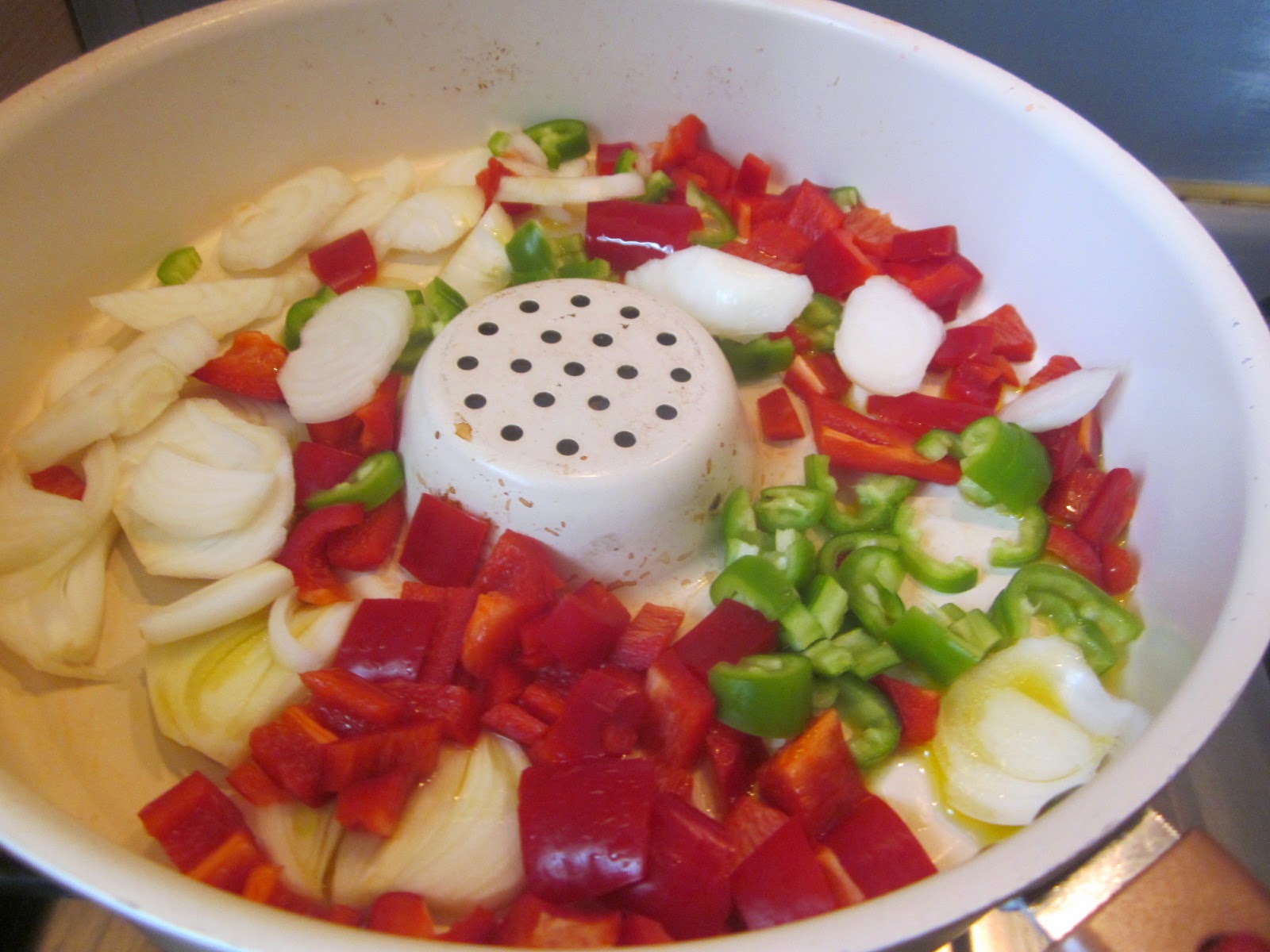 Între timp se prepară saramura. Legumele se curăță se toacă mărunt, ideal ar fi fost să fie gătite pe grătar, dar n-am avut loc, așa că le-am copt în DryCooker;) bune și așa;)