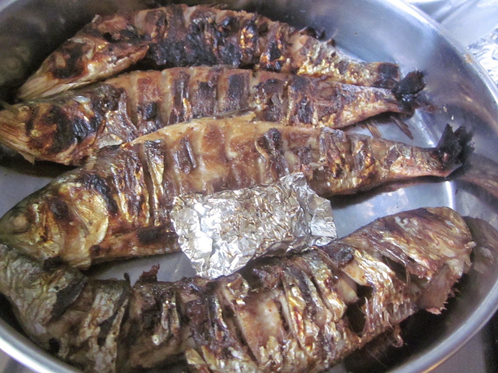 Peșetele se curăță de sarea în exces, apoi se crestează pe toată suprafața lui, asta ca să se prăjească și oasele bine :d, se coace pe grătar.