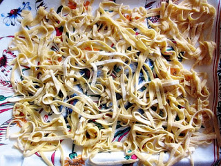 Tăițeii de casă sunt foarte buni, mai ales dacă îi face mama :)) Dacă nu ne-am mai văzut de mult, mi s-au terminat proviziile și a trebuit să prepar eu 😉 Am scos mașina de întins, tăiat tăiței de la ”naftalină” ( nu am mai folosit-o de vreo 18 ani 🙂 și am trecut la treabă. Sincer acum mi se pare tare simplu;) Spor și succes!