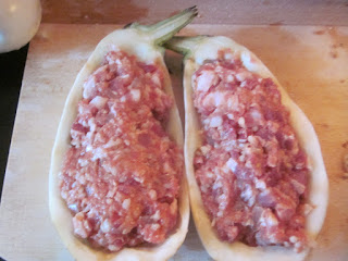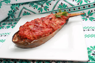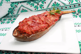 Se umplu vinetele, spălate de sare și zeama de lămâie, cu această compoziție.