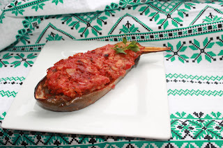Într-un vas termorezistent se pune un strat din sosul de roșii și legume, apoi se așează vinetele umplute, ce se acoperă cu restul de sos, apoi se dau la cuptor ptr cca. 15 de minute la foc moderat, acoperite, iar următoarele 10 minute se lasă neacoperite la foc mic, cât să prindă o crustă.