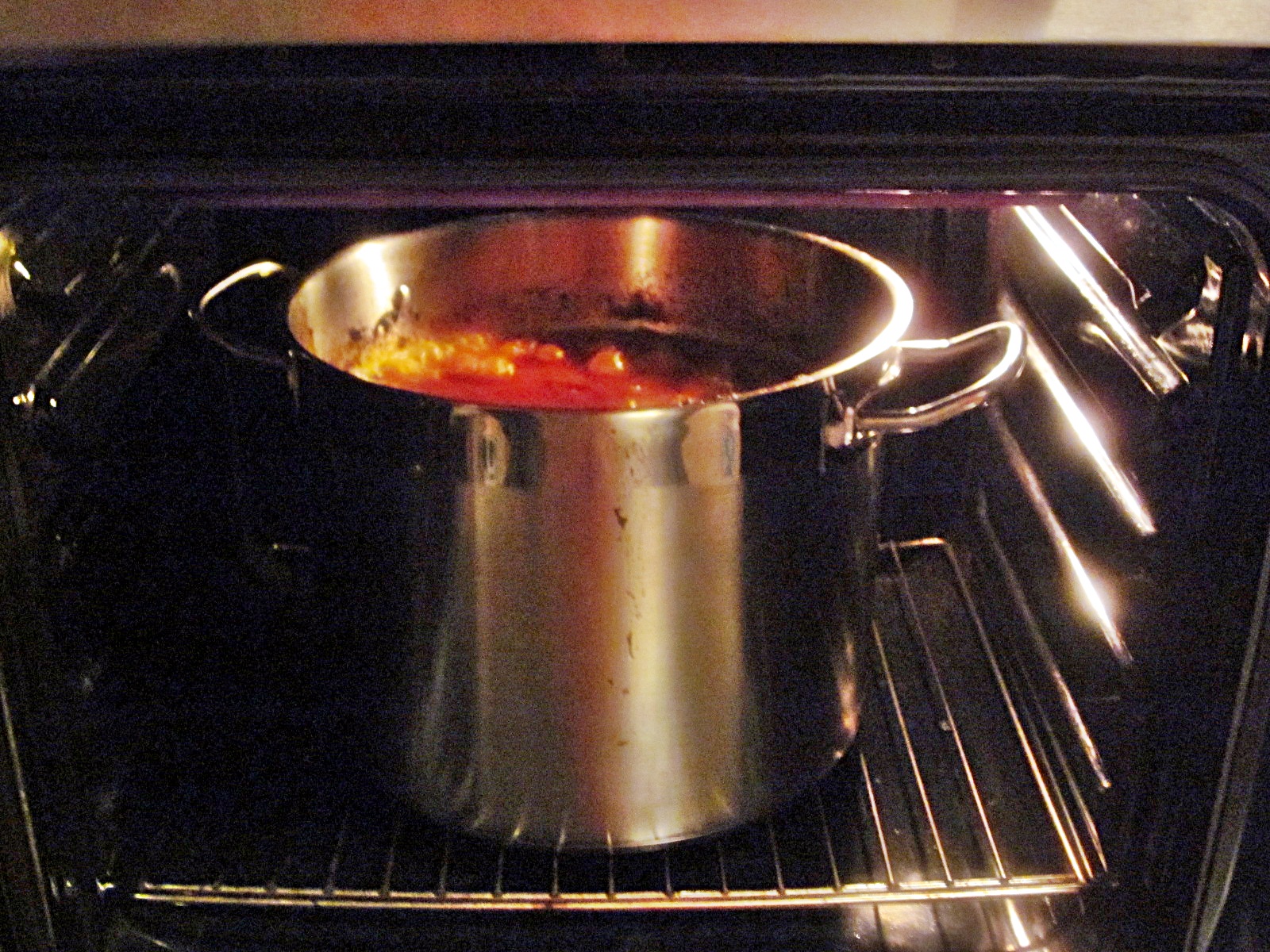 Se lasă la fiert la foc mic sau în cuptor pentru cca.4  oeă, până cand se ridică uleiul la suprafaţă.